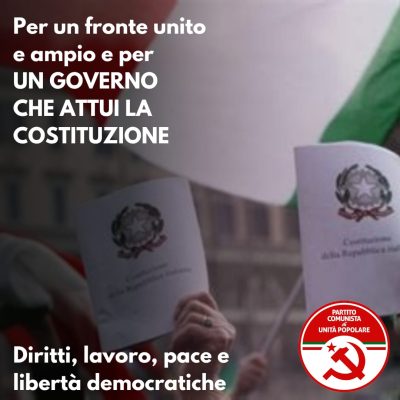 Convegno del 19 marzo a Roma: PER UN GOVERNO CHE ATTUI LA COSTITUZIONE. Diritti, lavoro, pace e libertà democratiche. Intervento del PCUP: costruire un fronte ampio!