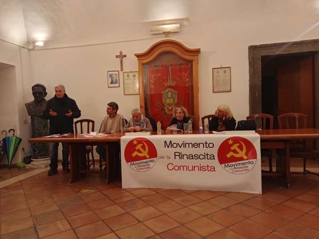 Il Movimento per la Rinascita Comunista si presenta nell’area romana, a Zagarolo, ribadendo il suo strenuo impegno antimperialista ed internazionalista. Sabato 10 febbraio, ore 18.00, presso l’Aula Consiliare di Zagarolo, Palazzo Rosignoli, il MpRC organizza un Convegno dal titolo “Medio Oriente, Ucraina, America Latina. Imperialismo e liberazione dei popoli”. Nonostante una pioggia fredda, che dura implacabile dalla sera precedente, allaga le strade e scoraggia l’uscita di casa, alle ore 18.30 la bellissima Sala Consiliare si riempie di compagni, dirigenti comunisti e di sinistra locali, intellettuali, sindacalisti. Diversi vengono da Roma, nonostante, appunto, la pioggia battente. Apre il Convegno, con una relazione introduttiva che parla del senso internazionalista del Convegno e presenta il MpRC, la compagna Candida Caramanica, Responsabile Relazioni Internazionali del MpRC. Caramanica dà poi la parola, per il primo intervento, ad Alberto Fazolo, noto e popolare giornalista combattente, esperto di questioni internazionali e specificatamente dell’area Russia, Ucraina, Donbass. Fazolo afferma che la guerra in Ucraina è pressoché terminata, che l’esercito ucraino, nonostante l’oceano di aiuti economici e militari provenienti dal fronte imperialista, è in rotta, che i 400 mila soldati ucraini che Zelensky ha mandato a morire sul fronte al servizio del progetto Usa, Nato, Ue volto a trasformare l’Ucraina in una sterminata Base militare Nato ai confini della Russia, sono morti inutilmente poiché l’esercito russo è già vincente. E che già gli Usa e la Nato stanno cambiando obiettivo di guerra, sempre nel senso di attaccare e sfiancare la Russia, verso i Paesi Baltici.