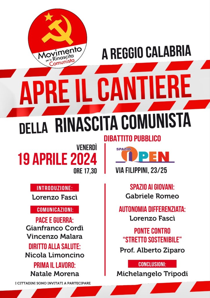 15 aprile 202426 Maggio 2024 Blog Movimento Venerdi19 aprile ore 17.30 Spazio Open a Reggio Calabria “Apre il cantiere della Rinascita Comunista” Condividi: Fai clic per condividere su X (Si apre in una nuova finestra) X Fai clic per condividere su Facebook (Si apre in una nuova finestra) Facebook Mi piace Caricamento... Correlati