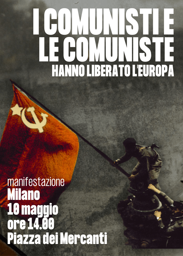 10 maggio alle 14.00 in Piazza dei Mercanti presso la lapide commemorativa per i caduti della Resistenza per ribadire e difendere il ruolo dei comunisti nella vittoria sul nazifascismo, con le bandiere del movimento comunista di ieri e di oggi.