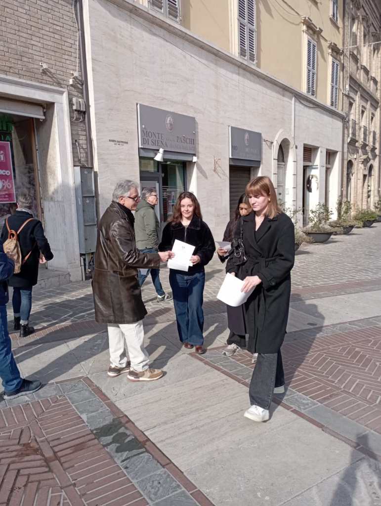Il sit-in del PCUP è stato un vero successo: centinaia di volantini distribuiti, decine e decine di cittadini fermatisi a parlare, ex professori, in pensione, del Liceo “Leopardi” venuti a portare solidarietà agli attuali studenti liceali e, soprattutto, gli stessi studenti del Liceo (dei quali non faremo i nomi per il clima di minacce in corso) che avevano chiamato i giornalisti Lucidi e Lorusso ad intervenire in assemblea, venuti e fermatisi al sit-in del PCUP sino alla fine dell’iniziativa.