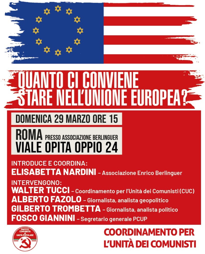 23 marzo 202623 marzo 2026 Blog Movimento Domenica 29 marzo ore 15 a Roma, Associazione Berlinguer Viale Opita Oppio 24: Quanto ci conviene stare nell’Unione Europea? Condividi: Condividi su X (Si apre in una nuova finestra) X Condividi su Facebook (Si apre in una nuova finestra) Facebook Mi piace Caricamento... Correlati
