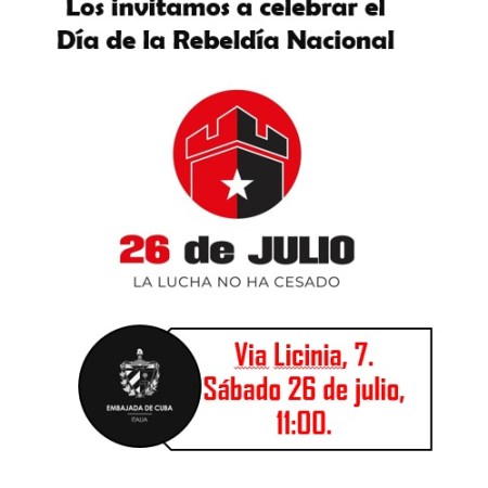 26 luglio scorso, all’Ambasciata di Cuba: il Movimento per la Rinascita Comunista e Resistenza Popolare, uniti, all’incontro per la ricorrenza dell’attacco alla Caserma Moncada